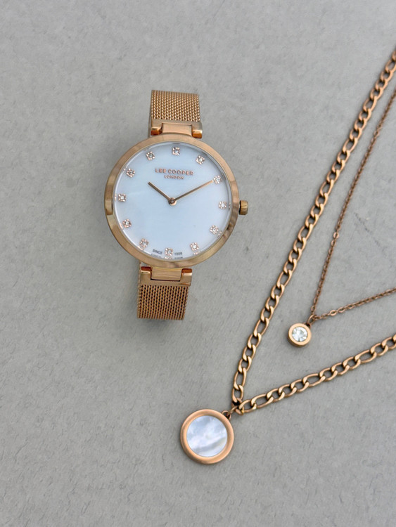 رنگ های به کار رفته:رزگلد-سفید صدفی